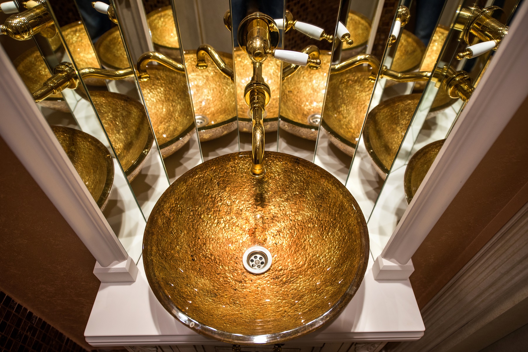 Использование элементов в виде ромба или квадрата позволяет собрать зеркальное панно любого размера и воплотить самое смелое дизайнерское решение.